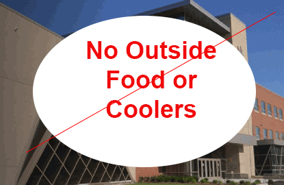 NO OUTSIDE FOOD OR BEVERAGES, EXCEPT FOR FACTORY-SEALED WATER BOTTLES.